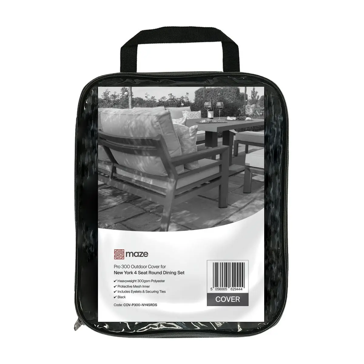 This Maze Pro 300 outdoor garden furniture set cover fits perfectly the Maze - New York 4 Seat Round Dining Set.