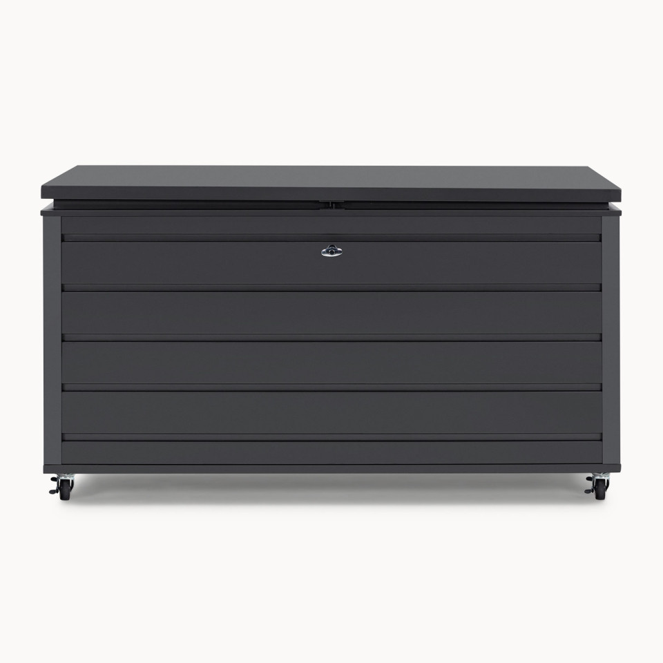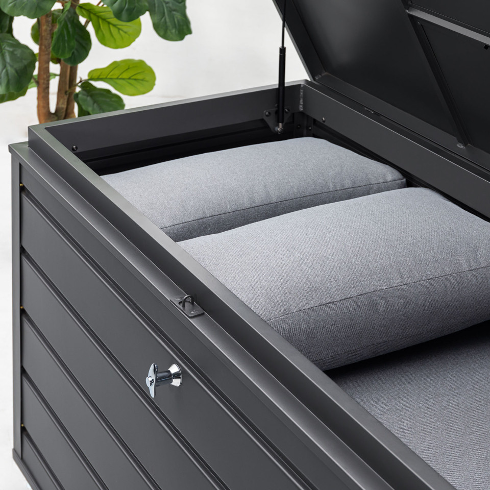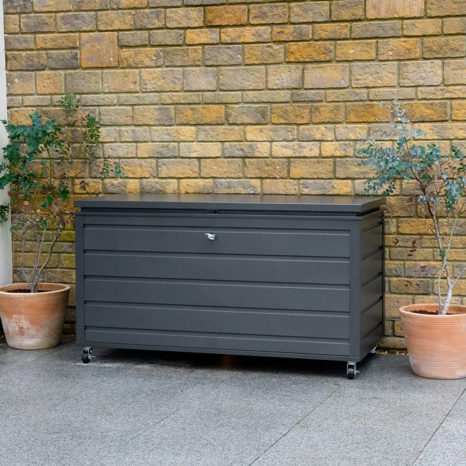 The ultimate handy storage solution, the Medium Aluminium Storage Box - Graphite Grey. This cushion storage box is a waterproof cushion box perfect for providing a handy outdoor storage solution for your cushions to save you from finding a place to store them indoors.