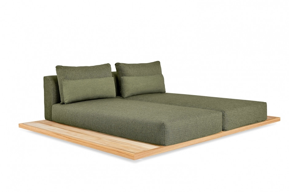 The SUNS Aspen Daybed has a natural teak base. Teak is an ideal type of wood for outdoor use: strong, weather-resistant, and with a long lifespan. In time, the original teak colour will turn a warm grey, which is part of its charm and character.