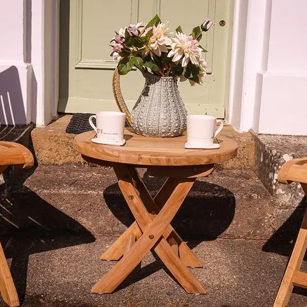 The compact teak folding coffee table is the Ideal companion for steamer chairs and sun loungers.