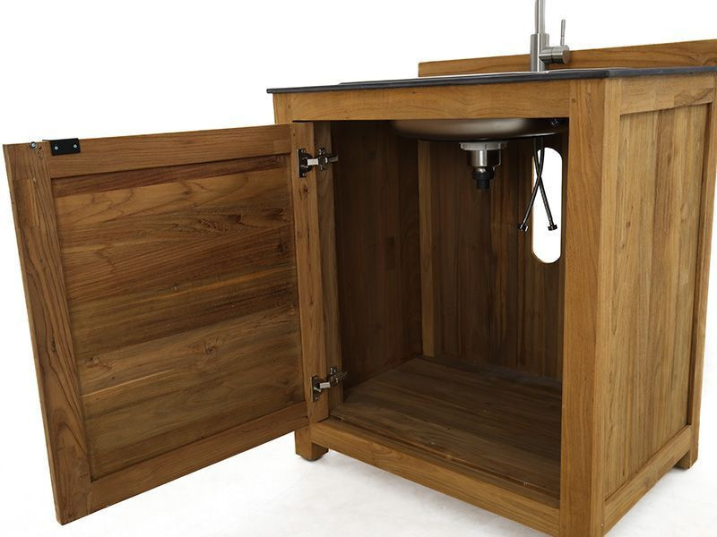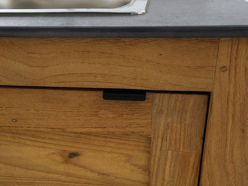 Fully effective and finished with a beautiful teak exterior, this outdoor kitchen sink unit is crafted to last you a lifetime. The galvanised hinges make our outdoor kitchens extremely robust and durable.