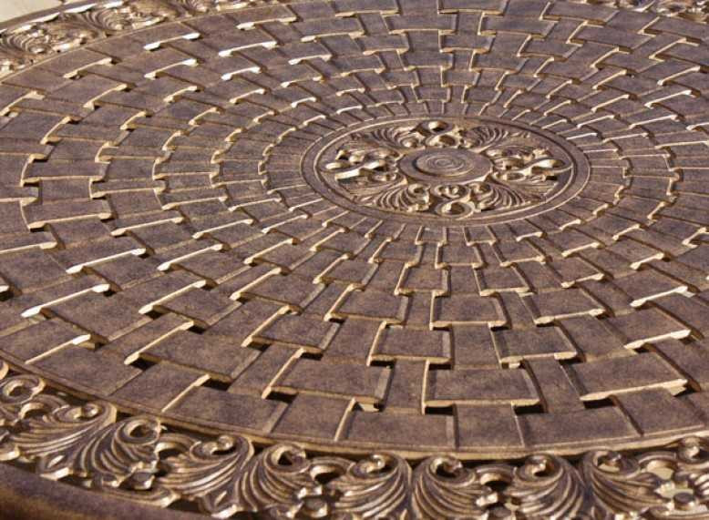 Ivycast uses high grade recycled aluminium for all cast and tubular aluminium products. Components are sand-cast or dye-cast depending on their structural need and complexity. Our tabletops are cast in one piece enabling us to produce smooth finished surfaces with concentric designs. The legs are then bolted to the tabletop in situ allowing us to deliver our largest product through a normal sized doorway. All our fixtures and fittings are zinc coated and none of our products are capable of rust.