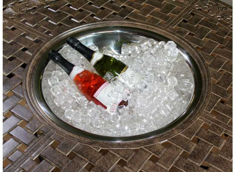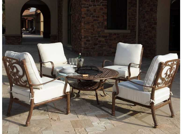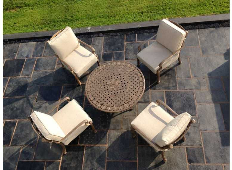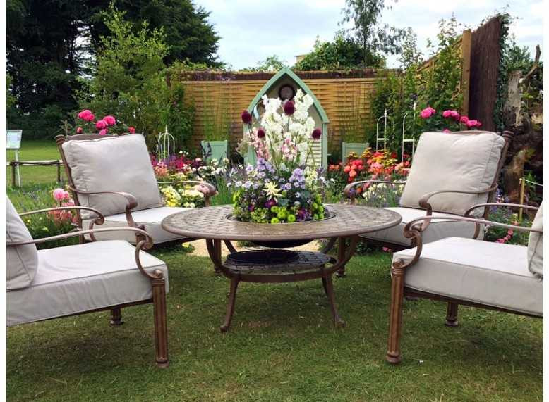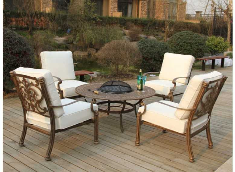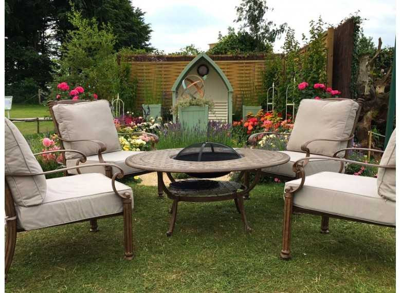 The dynasty fire pit set offers a unique outdoor dining experience, enabling you to barbeque at the table or swap over the BBQ bucket for an ice bucket to chill your drinks, the club chairs are extremely comfortable included with free of charge 4 luxurious thick cushions table and chairs made from cast aluminium.
