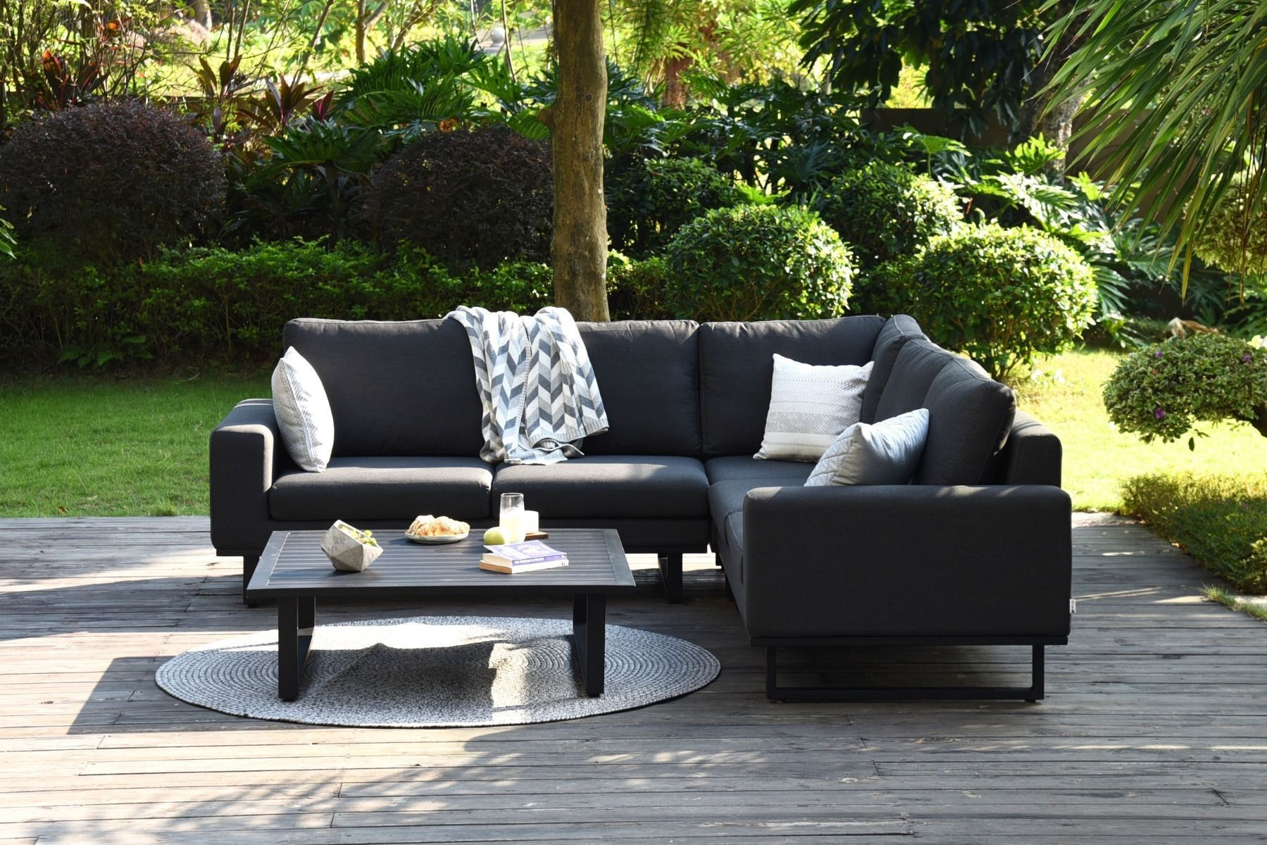The Ethos Corner Sofa Group evokes a sense of timeless elegance, with a classical design reminiscent of interior sofas. The Ethos Sofa truly unifies your inside and outside space by blurring the lines between your house and garden, whilst still retaining the look of a sofa that belongs outside.