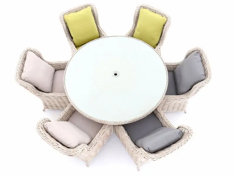 Please avoid leaving reflective objects on your table in direct sunlight. Glass table tops must not be located in direct sunlight (Glasses, Bottles, Ornaments) as this may lead to your rattan damaging in the sun.