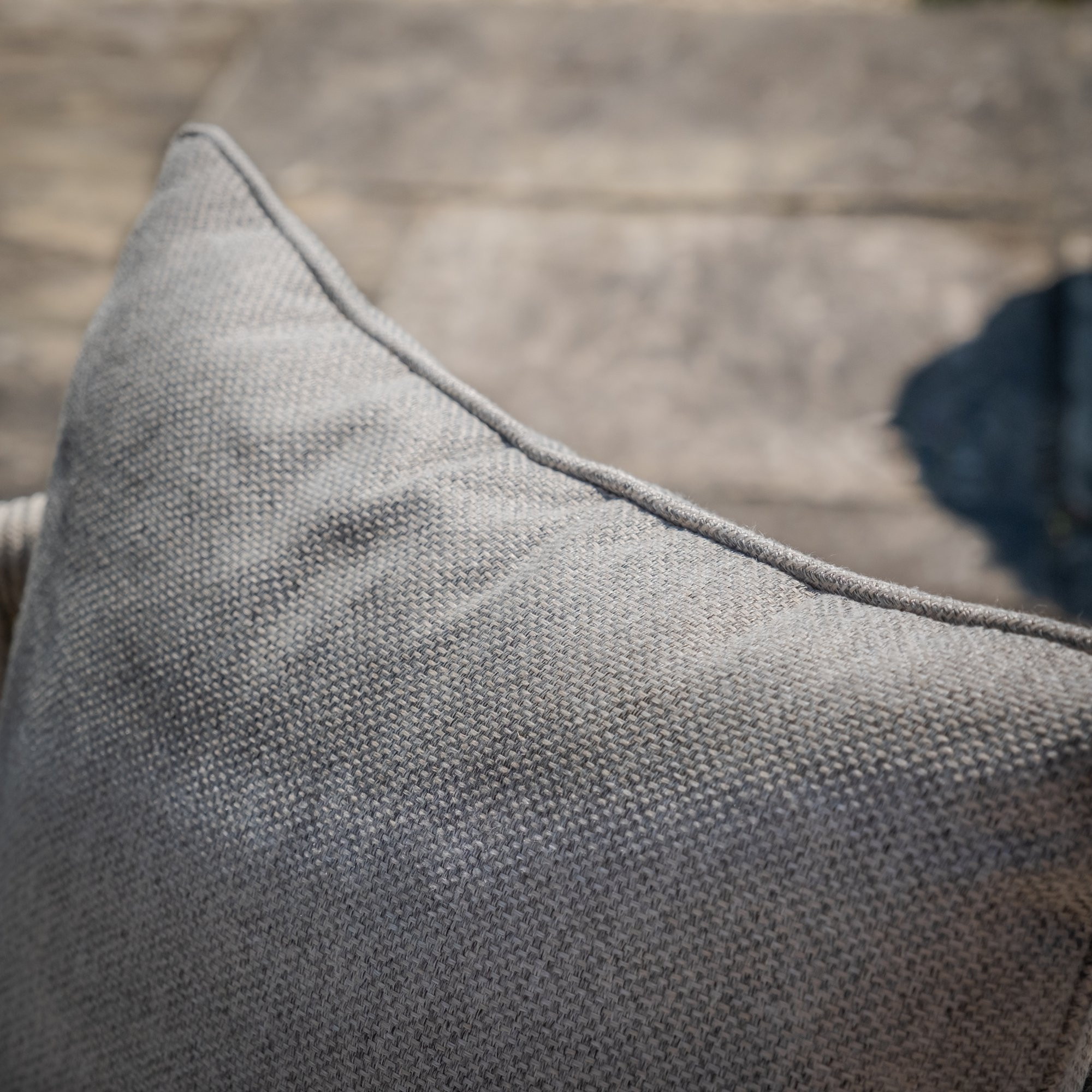 Each dining chair is paired with cushions in a soft fabric, featuring a cool grey hue subtly woven with hints of beige, which makes this collection stand out from the crowd.