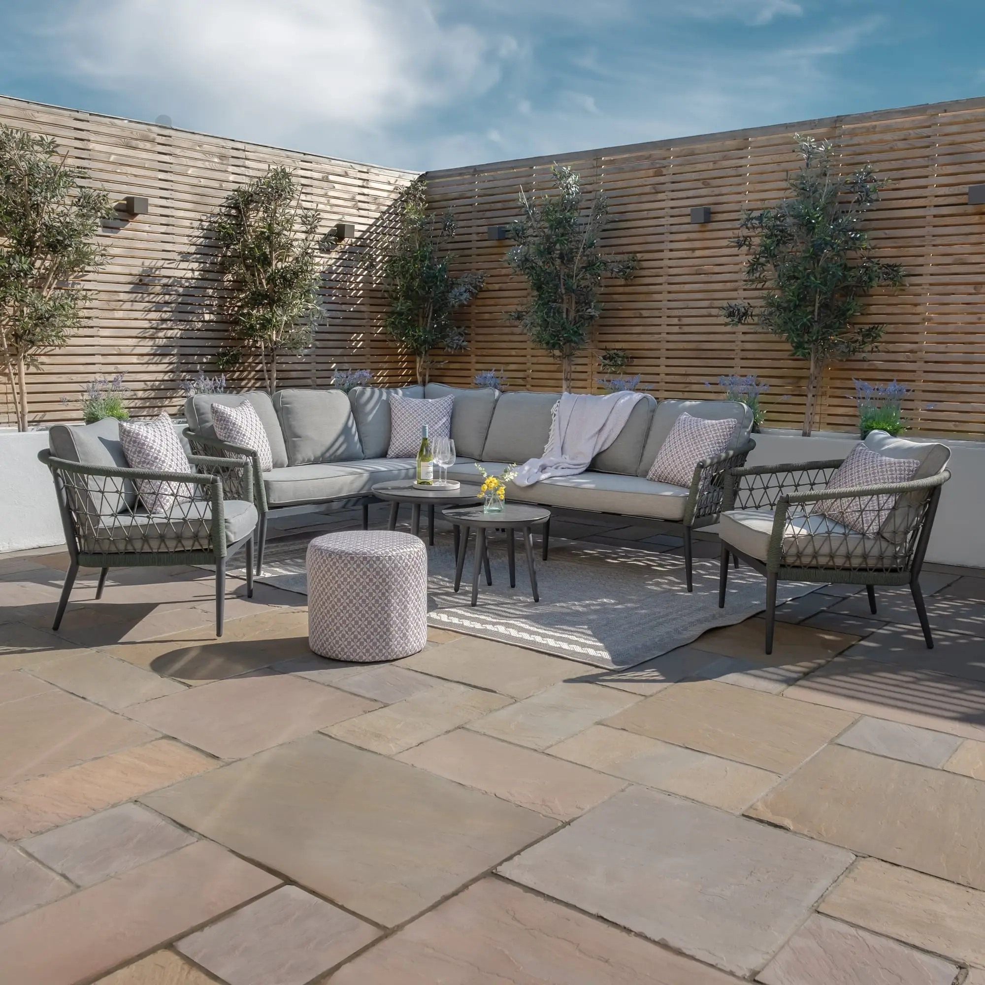 The Monaco Large Corner Sofa Set with its pair of round coffee tables is the ultimate combination of comfort and style, ideal for those looking to create a luxurious yet functional outdoor retreat. Whether you're enjoying a morning coffee or entertaining friends, this set provides the perfect spot to relax and unwind.