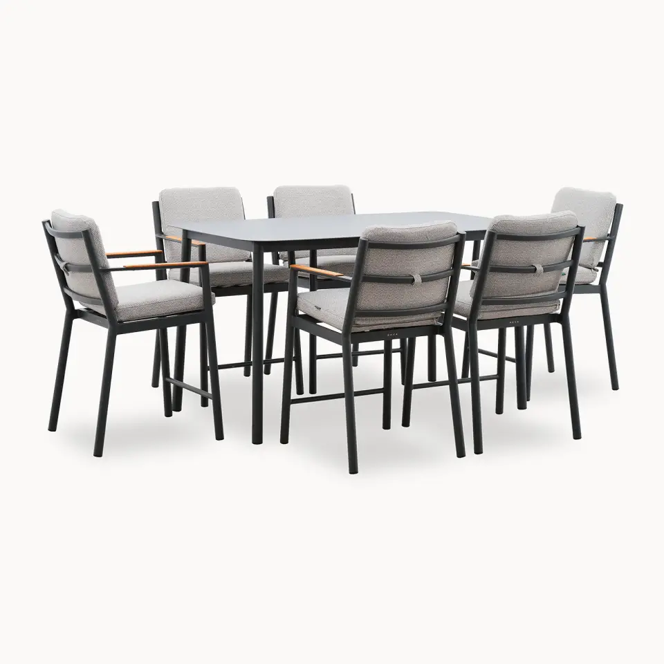 Monti 6 Seat Aluminium Wood High Dining Set - Rectangular Table