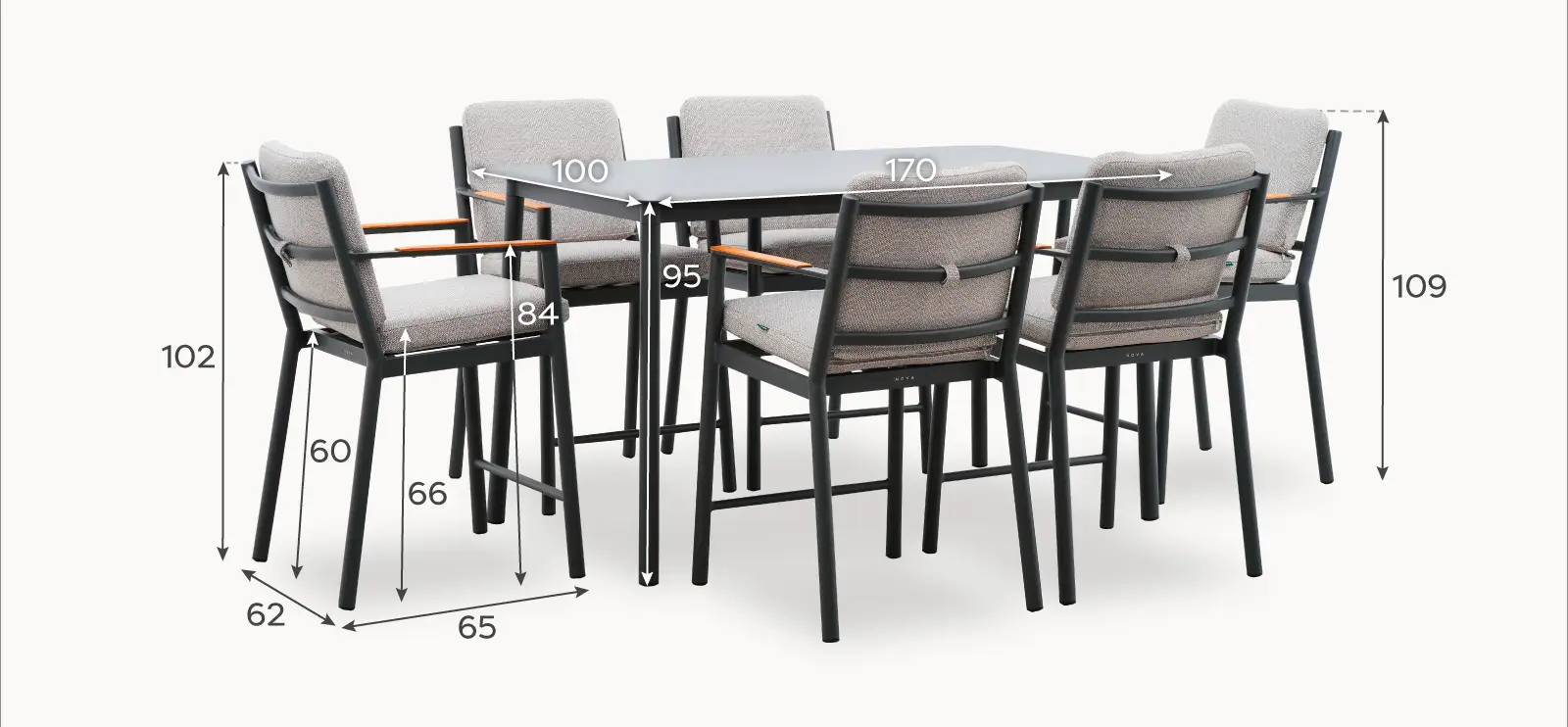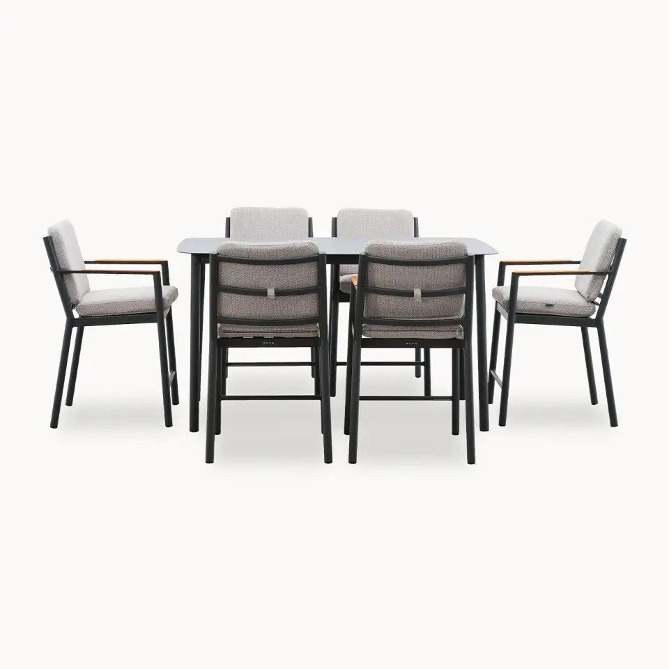 Sculpted for style and built for comfort, the Monti 6 Piece Seat High Dining Set with Rectangular Table is your ultimate outdoor statement piece. Designed with a bold, masculine edge, this premium 'lounging' and 'dining' range effortlessly balances form and function – ideal for those who appreciate clean lines, quality craftsmanship, and contemporary comfort.
