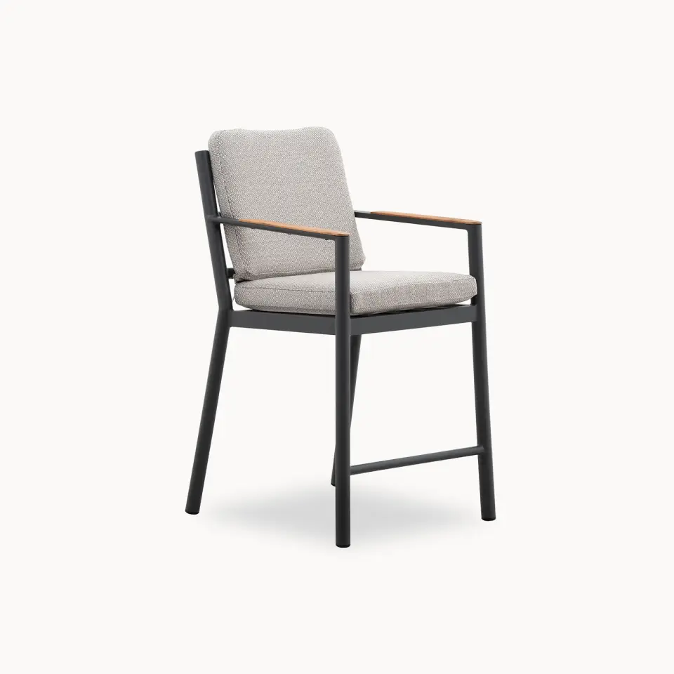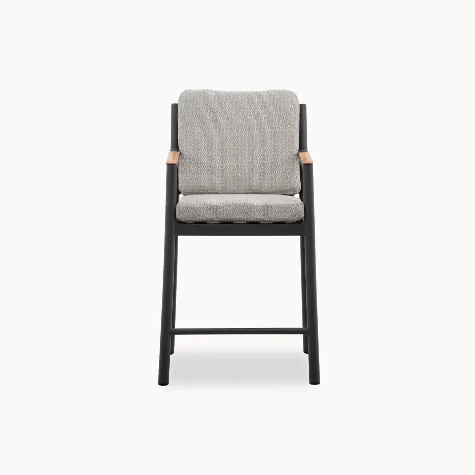 The 'Monti' range is defined by its signature teak wood armrests, which bring natural warmth and contrast to the sleek, black slatted frames. Finished in durable grey powder-coated 'aluminium'. With uniquely shaped base cushions and textured upholstery, this collection brings a designer feel to your garden – combining visual interest with everyday relaxation. Deep, supportive seating invites you to sink in, whether you’re dining al fresco or lounging with a drink in hand.