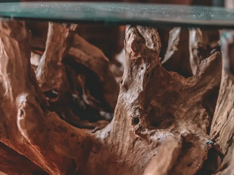 The root sections are individually selected and then cut and shaped to make the eye catching support.