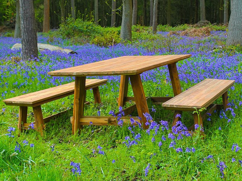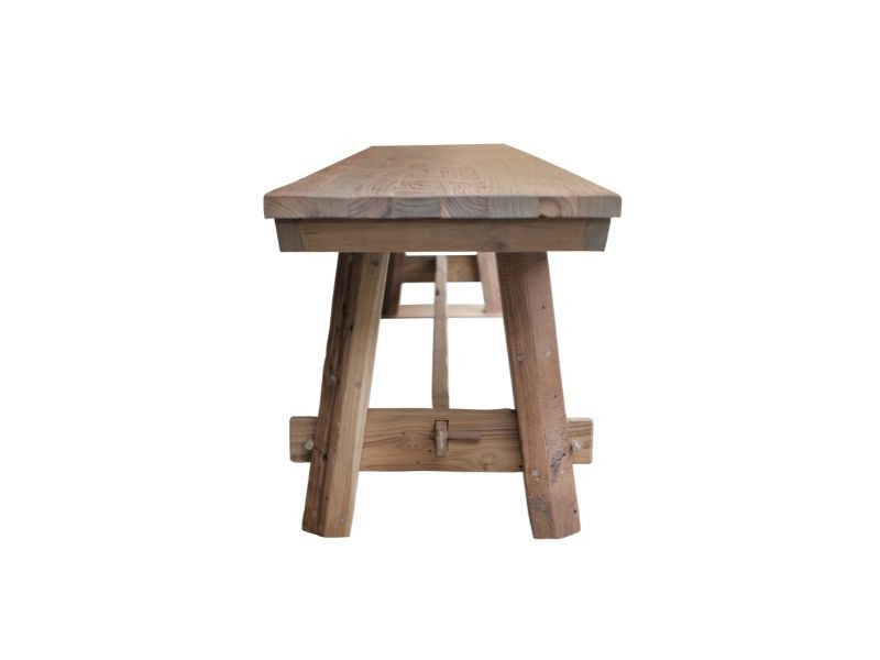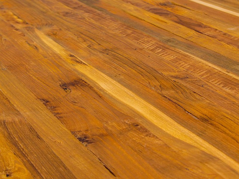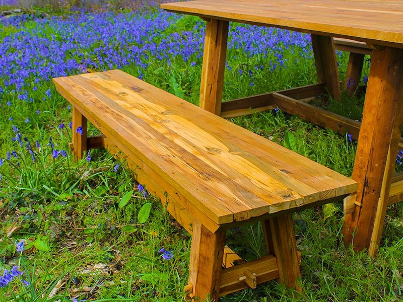 The table is hand finished in a superb rustic style with a chunky aspect and sturdy finish. The teak is genuinely reconditioned and crafted by hand making each one unique to you. The solid strips of teak that run along the table top are reflected in the strips along the benches, another little feature that looks great and enhances the appeal of this bench set as a whole.