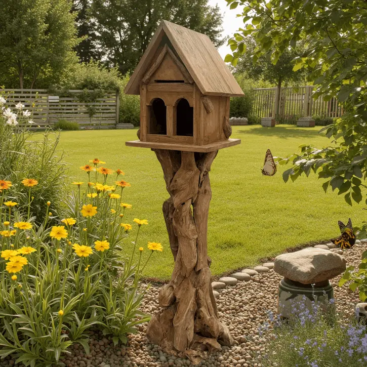 This elegant teak birdhouse will make a gorgeous addition to any outdoor area! Not only that but it will provide a perfect nesting place for some of our feathered friends!