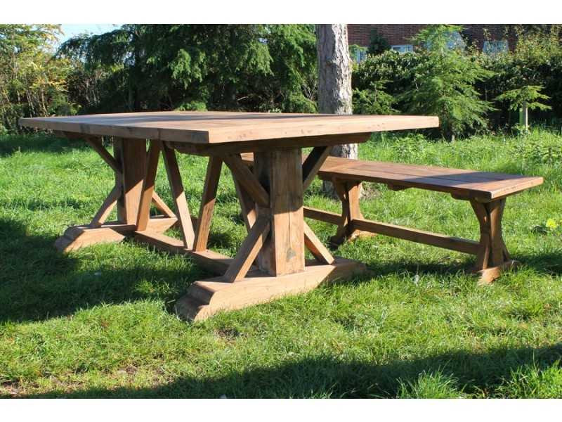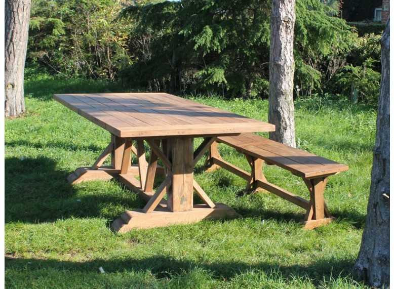 The Valencia table with its huge 5cm thick tabletop & 20cm chunky legs, made from reclaimed teak. Solid construction, this table is built to last can be used in either the garden or in your villa.