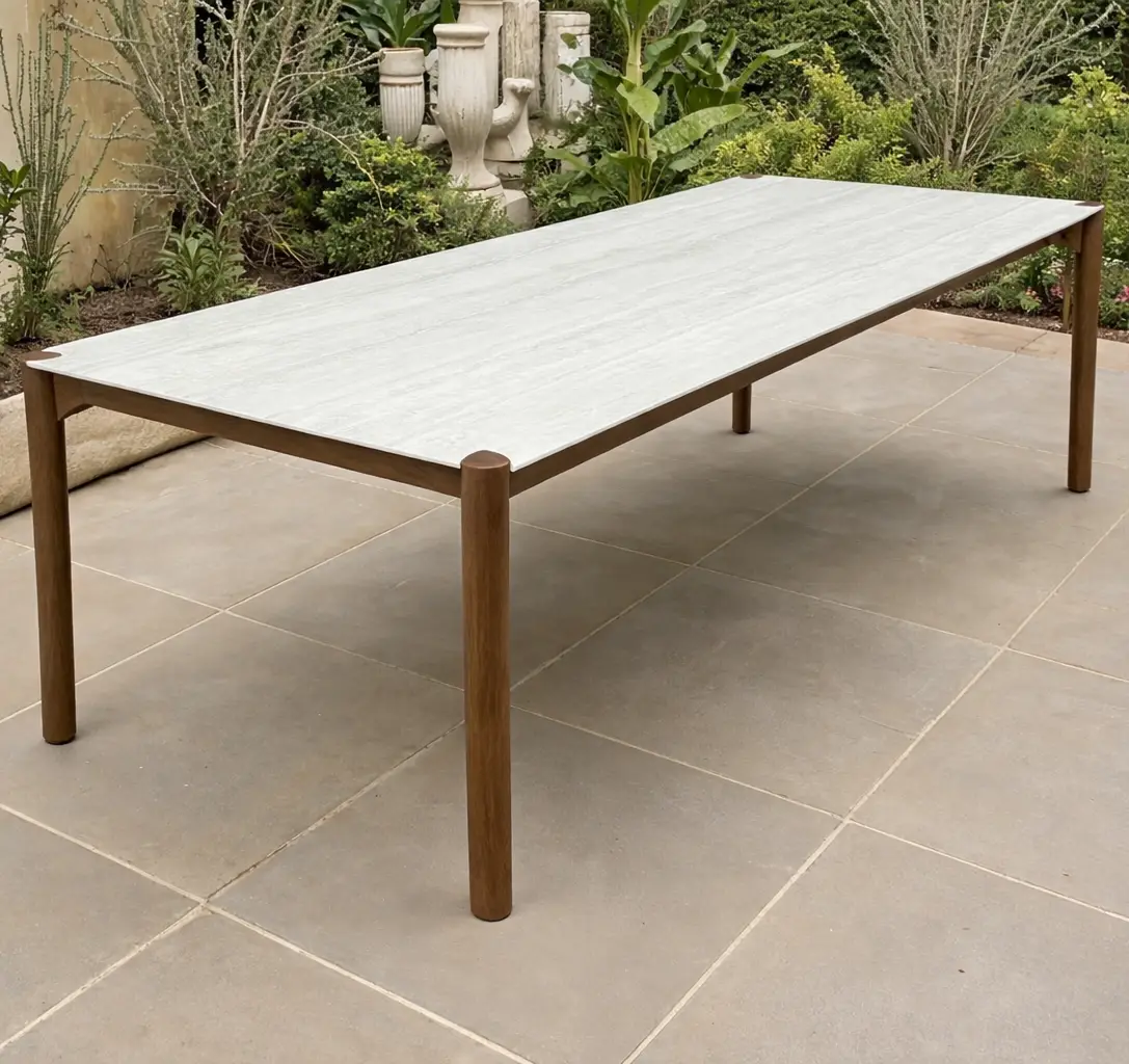 The Veluta Teak Dining Table is a striking fusion of natural warmth and contemporary elegance. Featuring a solid FSC®-certified teak base paired with a refined stone tabletop, this statement dining table brings timeless style to both indoor and outdoor spaces.