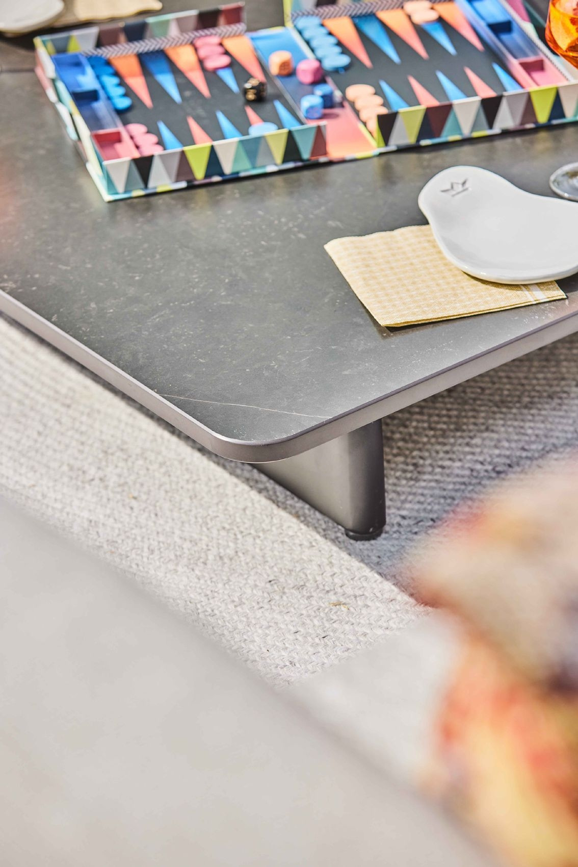 Please Note the coffee table is made from a natural Neolith has created a vein that acts as a seam throughout the material.